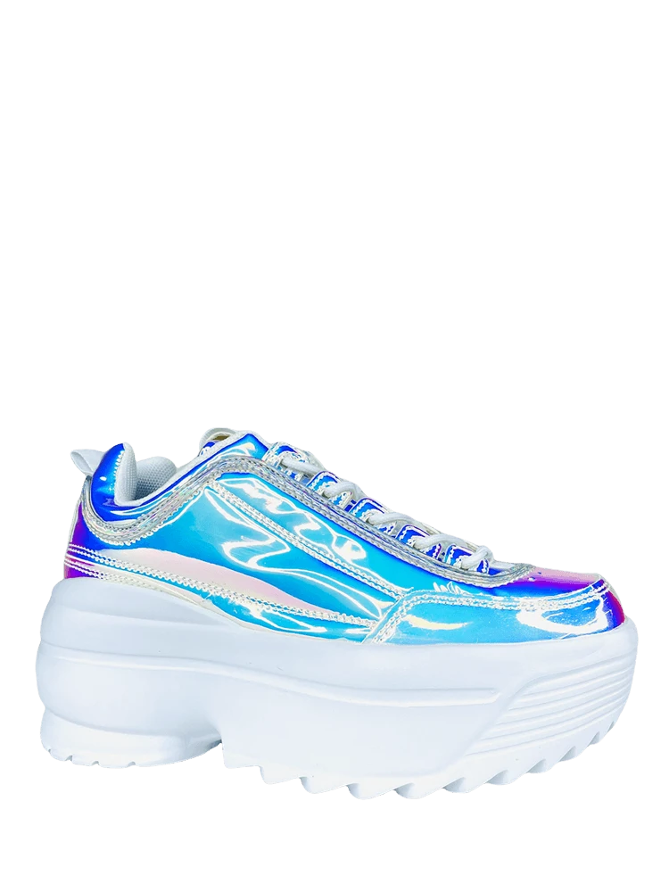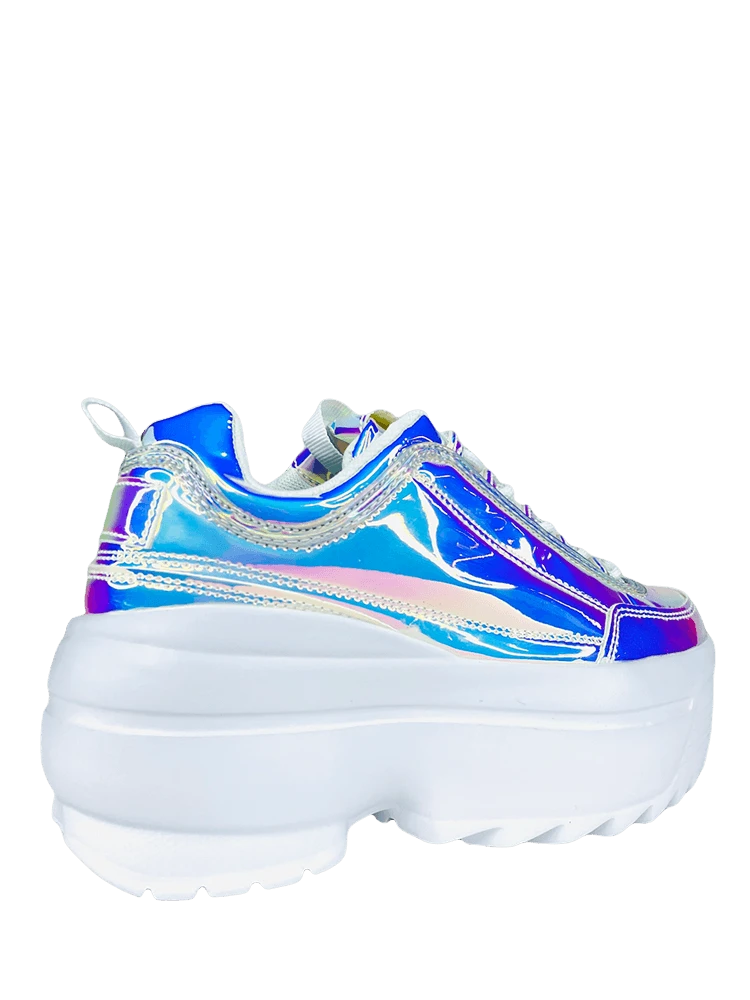 Atlantis iridescent PU upper. White round laces. White rubber outsole. White tricot lining.Â