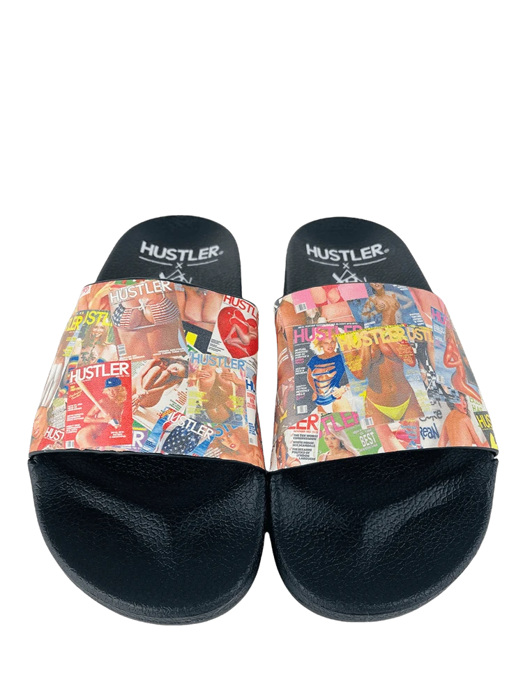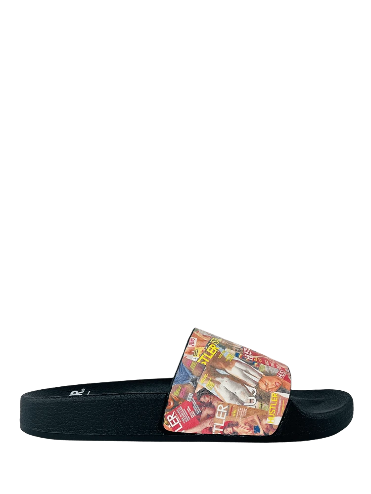 Hustler Magazine Cover printed upper. Black Rubber Outsole. US women’s sizing. Man-made materials.