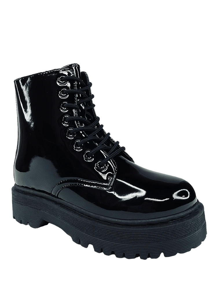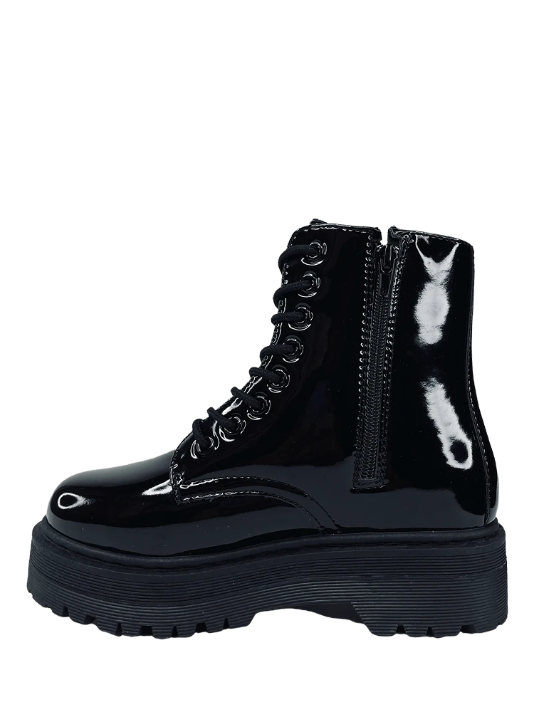 Black vegan patent leather upper