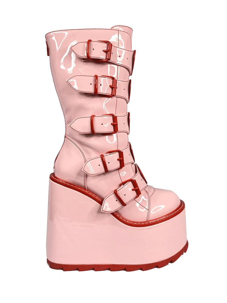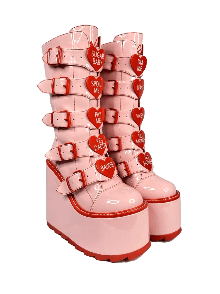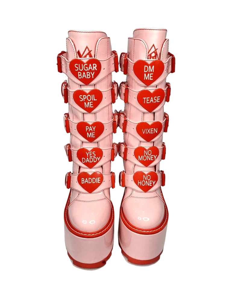 Your Dune Boot Is Now Sweeter Year-round In This Unique Strawberry Patent Colorway With Candy-like Shaped Hearts With Inscriptions Of How You Really Feel. Ready For You To Wear!